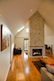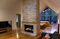 • Open plan living area with high ceilings and a double sided stone fireplace.